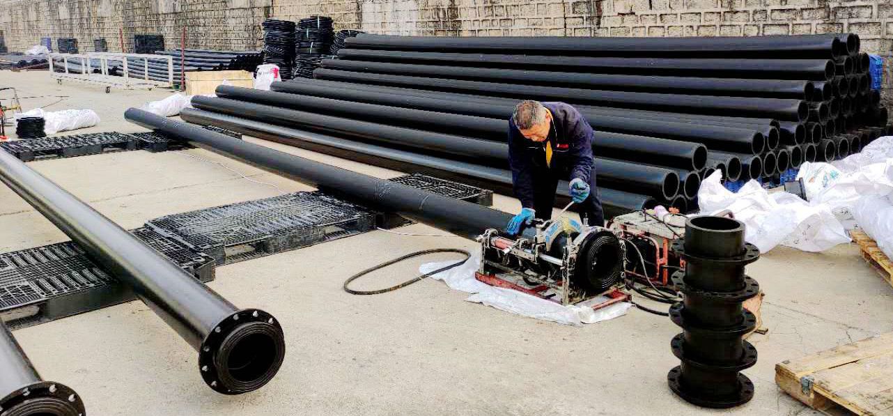 國慶中秋雙節(jié)前夕,金潮新材公司接到招遠(yuǎn)市內(nèi)客戶急需規(guī)格為250×18.4 PE給水管660米和225×20.5 PE尾礦管1800米的兩筆訂單,發(fā)貨前需將管道兩端焊接好法蘭連接件。為確保訂單如期供貨,金潮新材公司生產(chǎn)部組織精干力量,放棄假日休息,起早貪黑、加班加點(diǎn)熱熔對接管材。單根225的大口徑管材重達(dá)130公斤,需要2人合力搬上對接設(shè)備。他們克服對接難度大、要求工藝高、時(shí)間緊、任務(wù)重等困難,憑著金潮人敬業(yè)的精神、過硬的技術(shù)、吃苦耐勞的作風(fēng),保質(zhì)保量地按時(shí)完成了供貨任務(wù)。