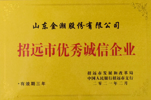 金潮公司榮膺“招遠市優(yōu)秀誠信企業(yè)”稱號
