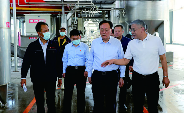 5月18日上午,招遠(yuǎn)市委書記賀業(yè)增蒞臨煙臺(tái)金潮果蔬食品有限公司檢查指導(dǎo)安全生產(chǎn)工作。金潮控股執(zhí)行董事程紹華、金潮果蔬總經(jīng)理劉軍等陪同調(diào)研。