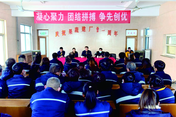 在2022年元旦即將來臨之際,2021年12月17日上午,煙臺金潮果蔬食品有限公司全體干部員工統(tǒng)一著裝,歡聚一堂,隆重慶祝建廠21周年。